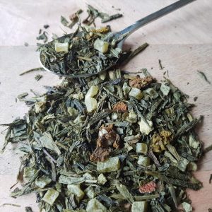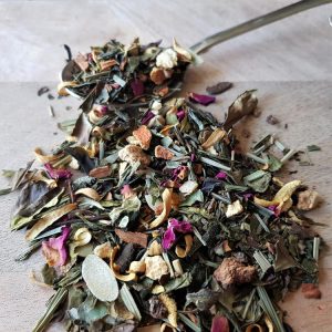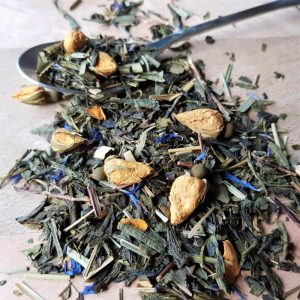 T03 MAMA MIA, HOW CAN I RESIST YOU is een groene thee melange met gele rozenknopjes, ginkgo, citroengras en korenbloembloesem. Deze thee doet zijn naam echt eer aan, een heerlijk frisse, bloemige thee die je kunt blijven drinken. Echt onweerstaanbaar lekker.